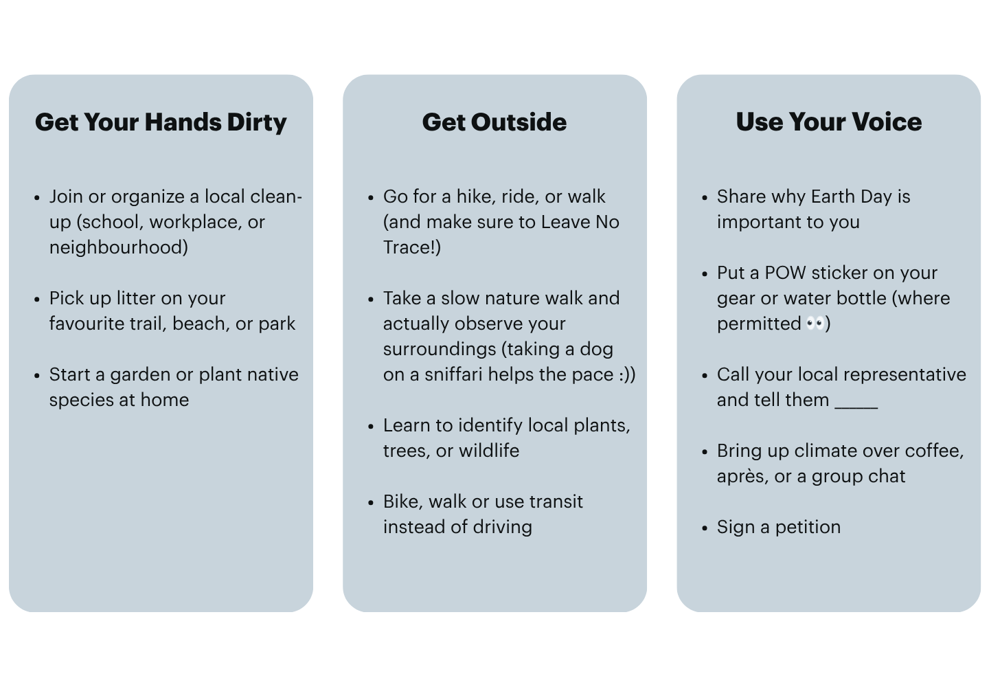 - Share it, tag Protect Our Winters Canada & nominate 3 friends
